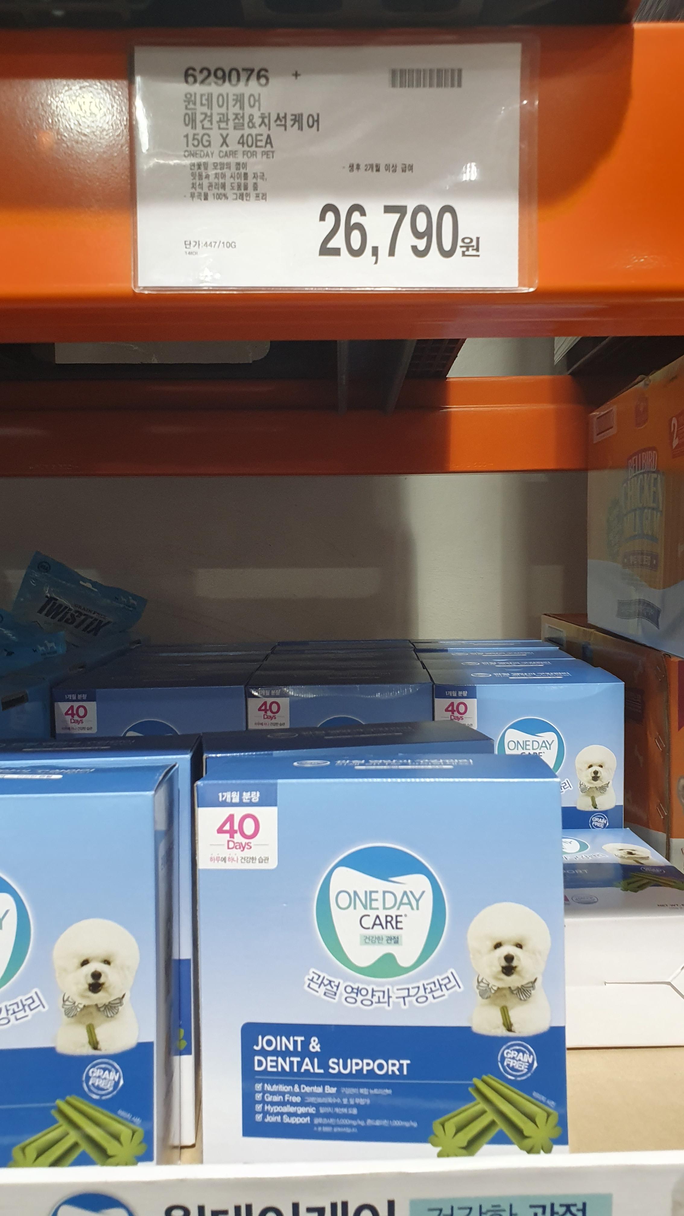 2) 원데이케어 애견관절 & 치석케어 15G X 40 EA : 26,790원 / 629076