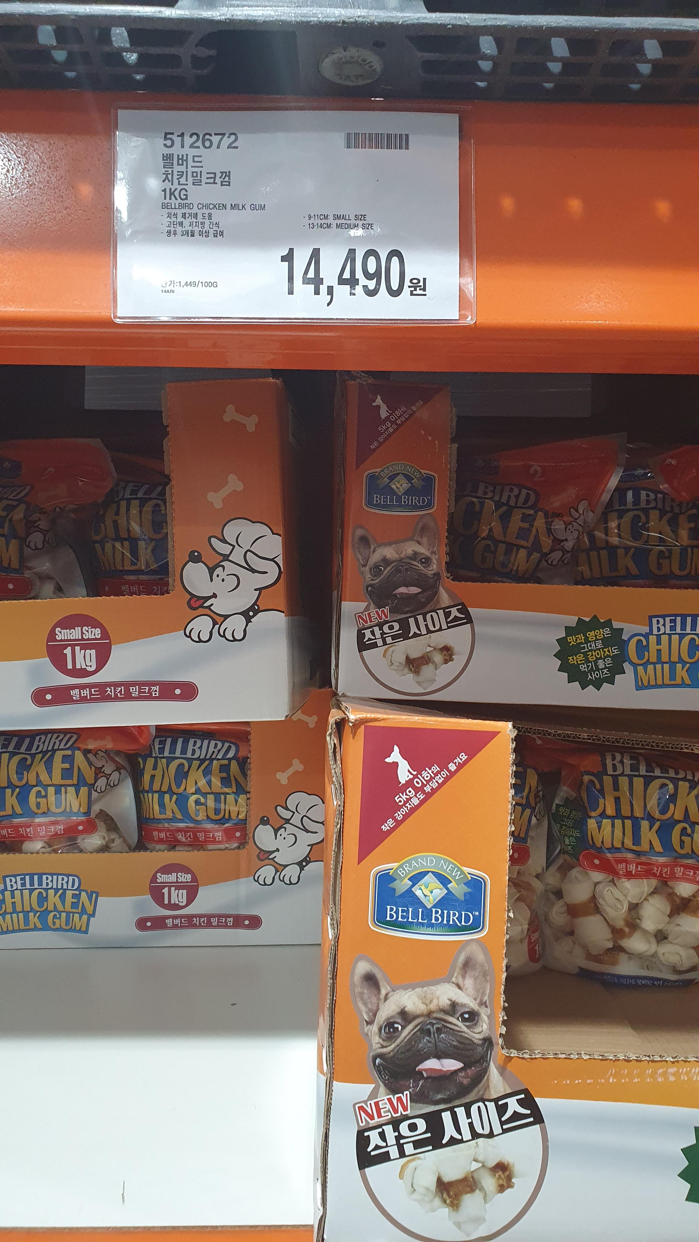 3) 벨버드 치킨밀크껌 1KG BELLBIRD : 14,490원 / 512672