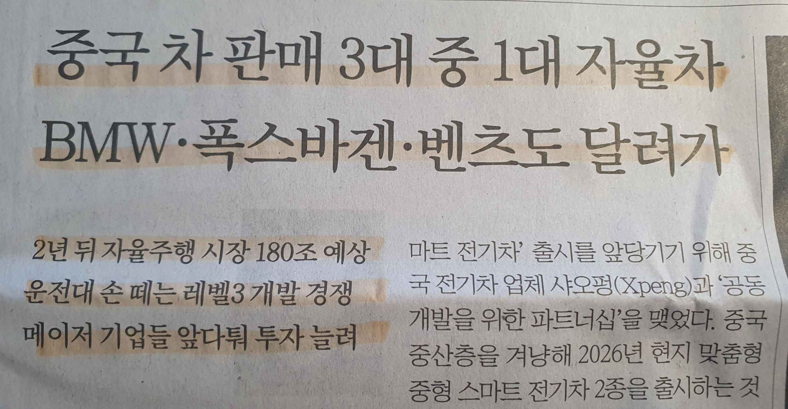 중국자율주행차 시장에 투자하는 글로벌 자동차 업체 23.8.3 중앙