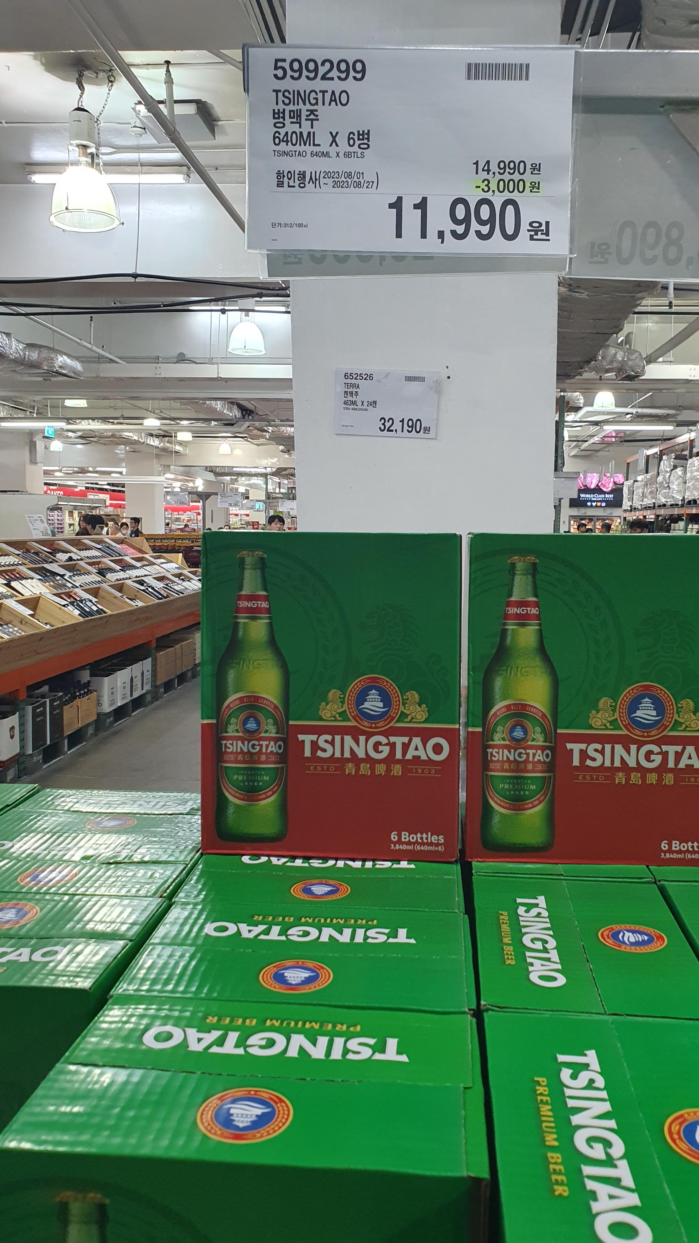 중국 맥주 브랜드 중 한국에서 가장 유명한 칭다오. 프로모션 가격 적용되어 1.1만 원에 구입할 수 있는 8월입니다.