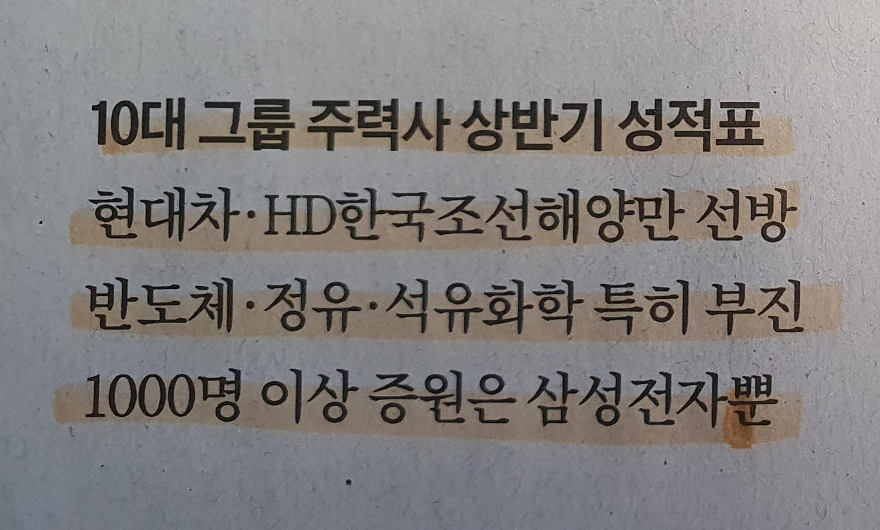 대한민국 10대그룹 주력 계열사 1년 성적 / 23.8.16 중앙