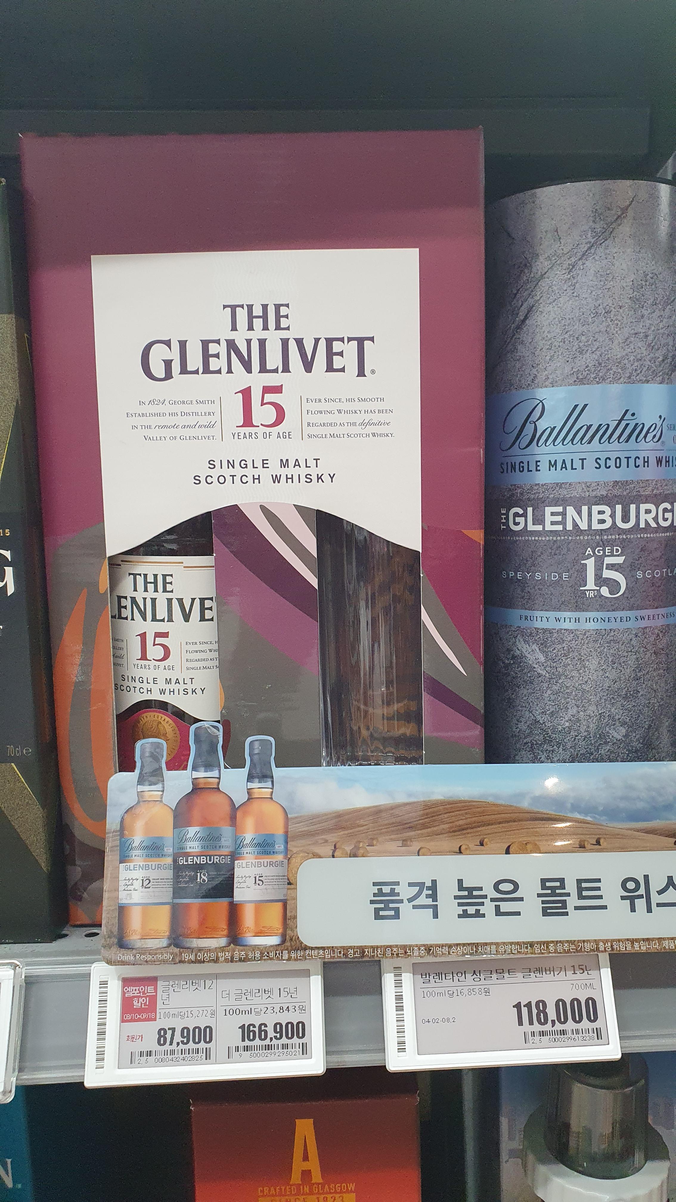 3) 발렌타인 싱글몰트 글렌버기 15년 700ml : 118,000원
