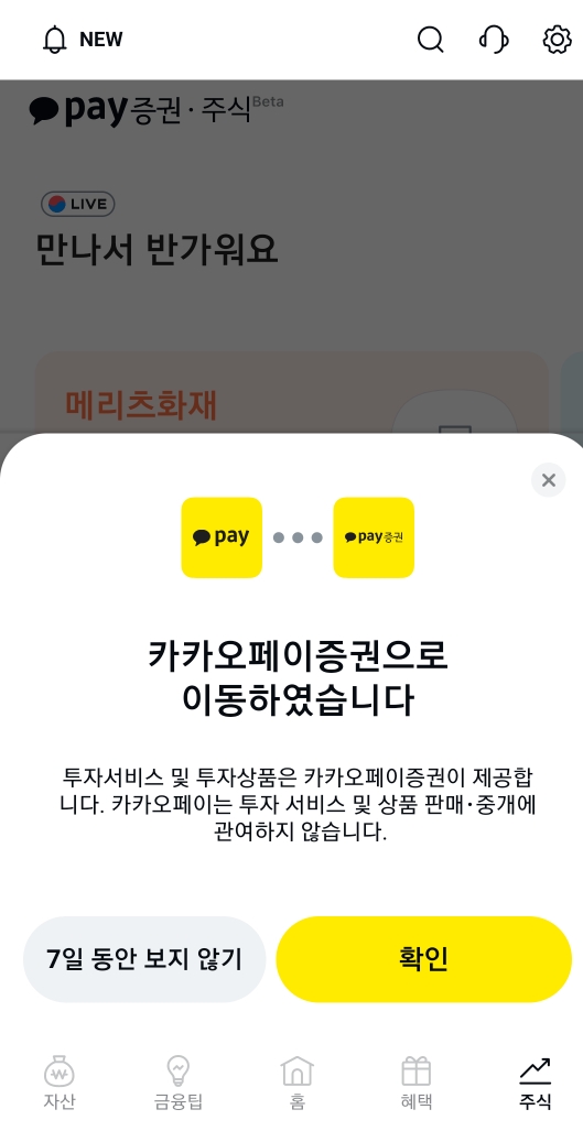 그전에도 카카오 페이에 증권 관련 부분이 있었지만 간접투자 형식으로 있어 아쉬움이 있었는데