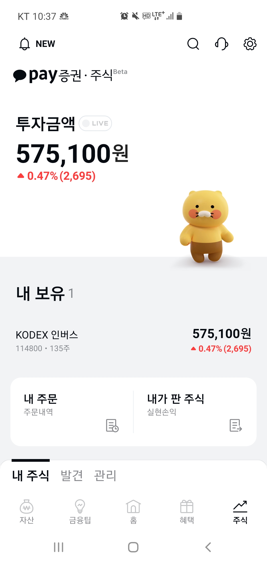 카카오페이 증권은 My status 창이 보여서 위로 아래로 내려봅니다.