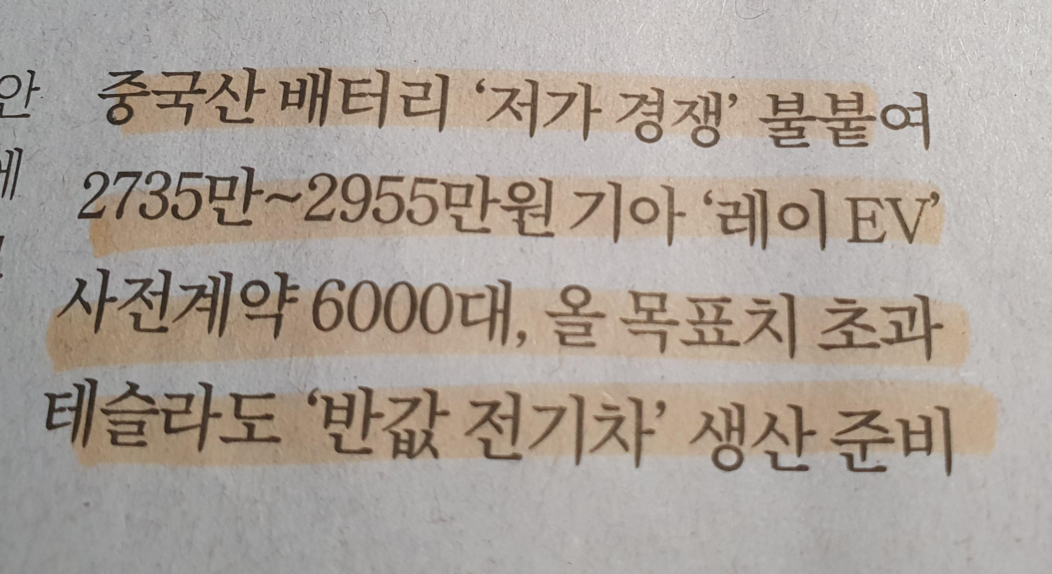 -전기차의 가격을 상충할 수 있는 중국산 배터리 LFP 리튬인산철을 장착한 자동차들이 한국에서도 출시되면서 전기차의 대중화에 공격적 마케팅