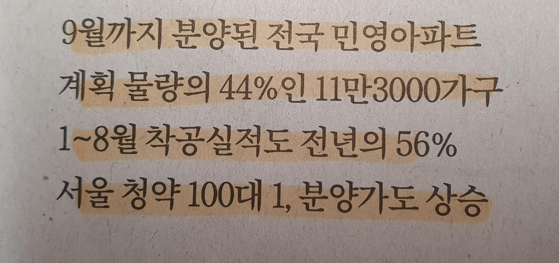 -1~8월 착공실적도 전년의 56%, 국가에서도 상반기까지 부동산 침체를 우려 대출을 풀어주어 청약이나 아파트 구입에 숨통이 트여 신청자가 많았다.