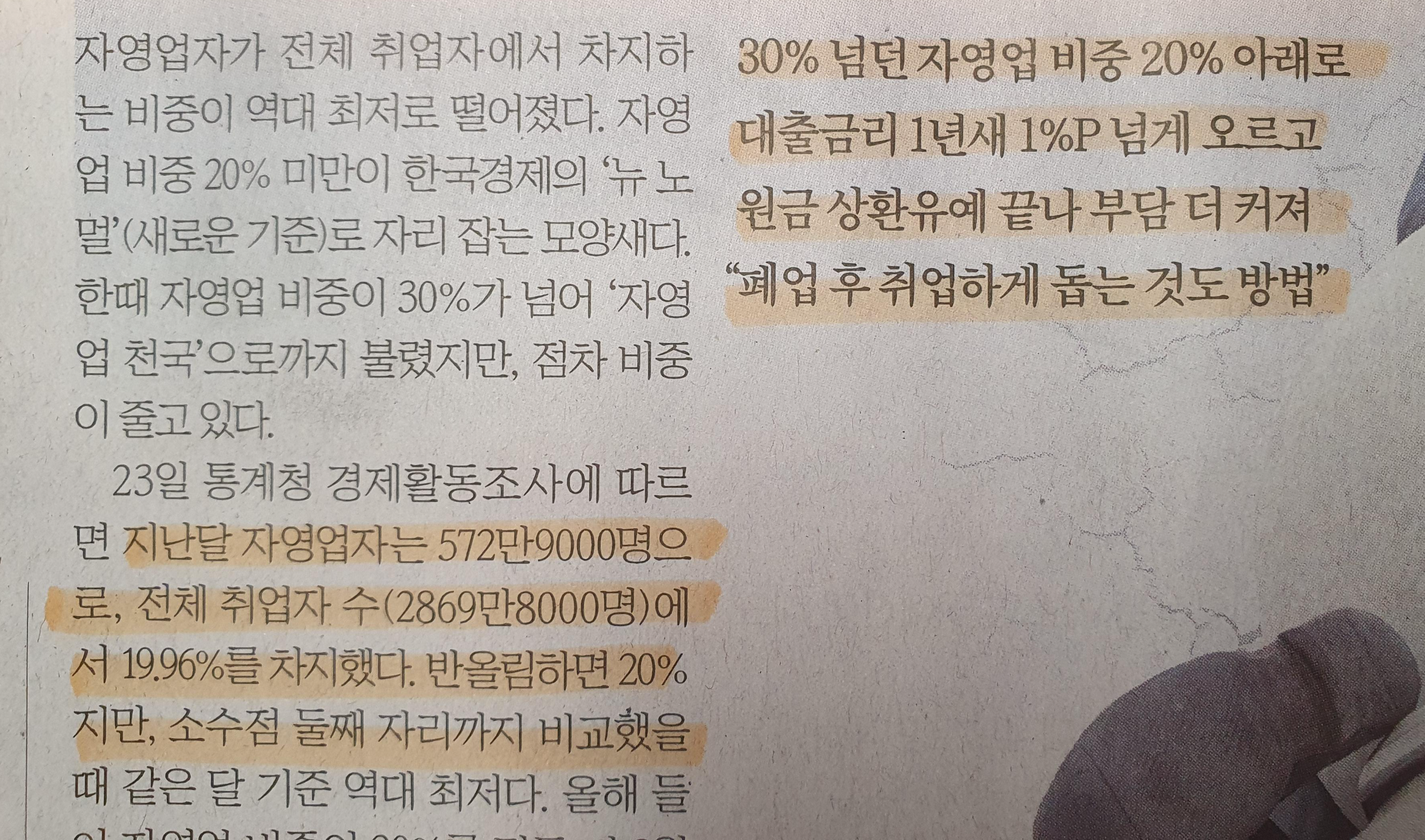 역대 최저로 떨어진 자영업자 비중 23.10.24 중앙