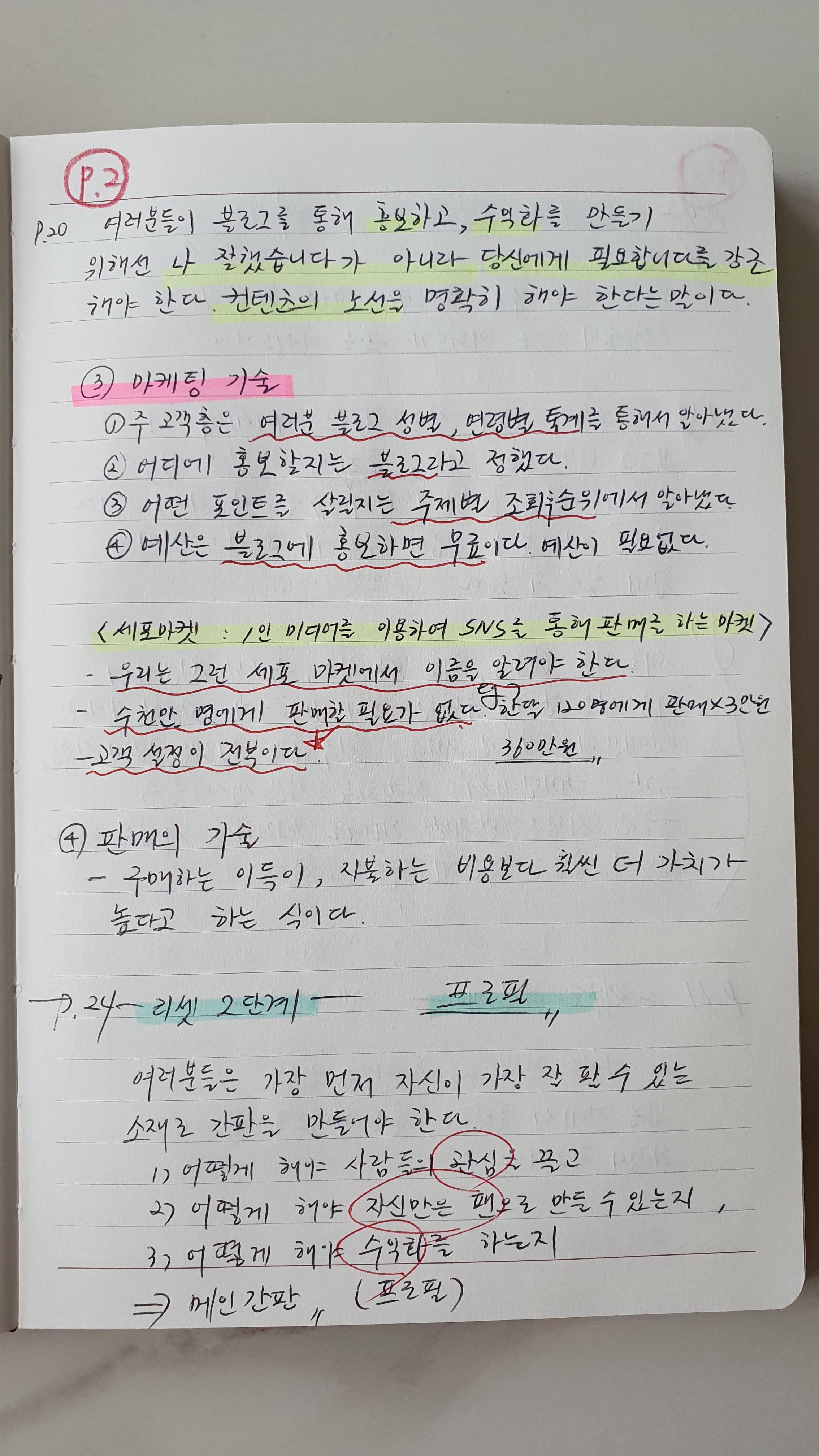 P.20 여러분들이 블로그를 통해 홍보하고, 수익화를 만들기 위해선 나 잘했습니다가 아니라 당신에게 필요합니다.를 강조해야 한다. 컨텐츠의 노선을 명확히 해야 한다는 말이다.