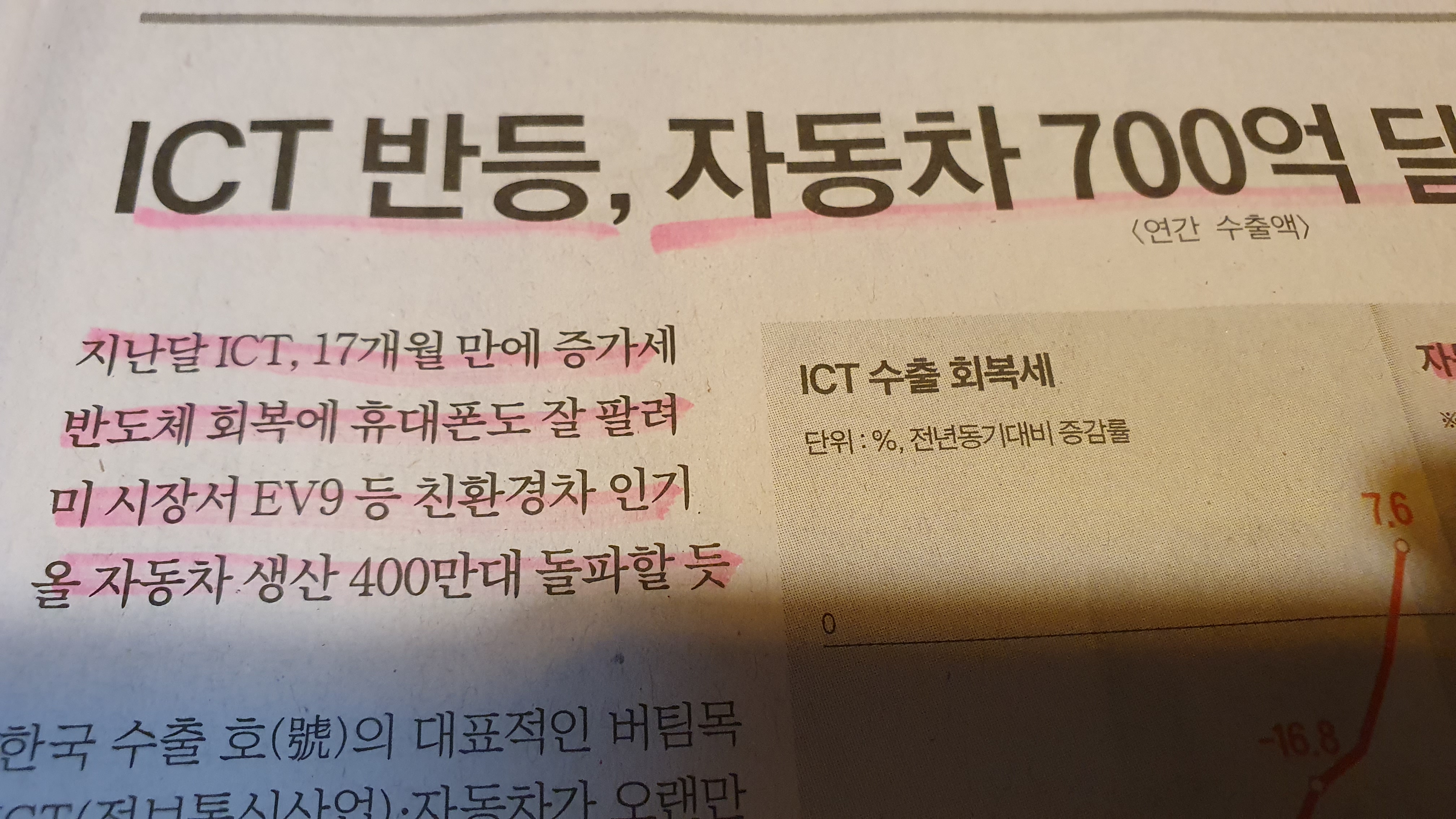 -그나마 홀로 대한민국 수출 품목을 이끌던 자동차 뿐만 아니라 반도체 회복에 스마트폰 판매도 좋아지고 있는 상황
