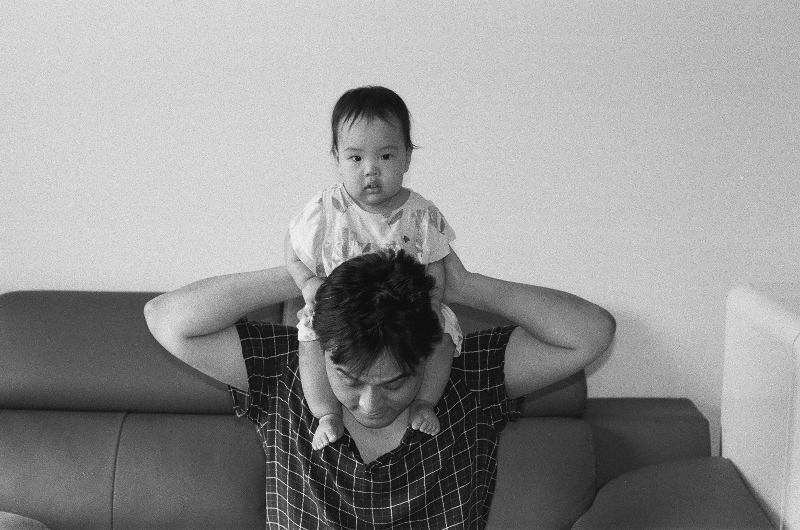 아빠머리를 움켜쥐고 카메라 응시하는 우리 딸.