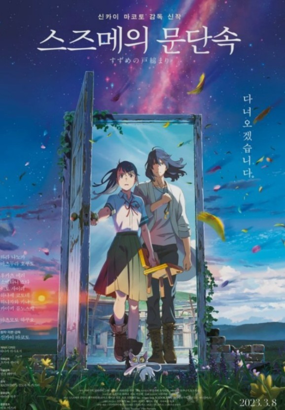 간호사를 꿈꾸며 조용한 시골 마을에 살고 있던 소녀 스즈메는 신비로운 분위기를 풍기는 청년을 만나 문 너머의 존재들이 현실로 넘어오는 것을 막기 위한 여정을 떠난다. - 구글 검색-
