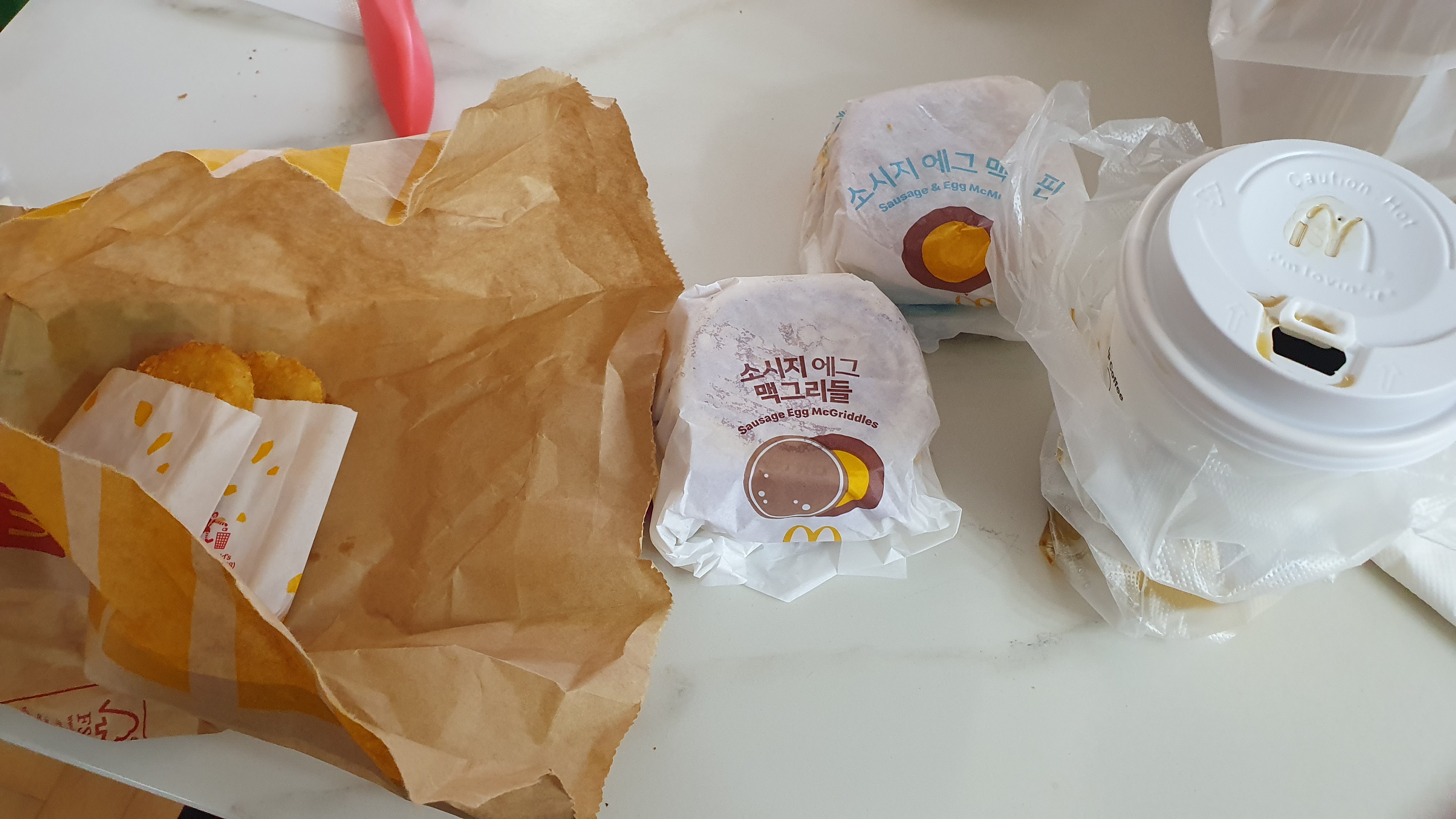 우리 집은 주말이 되면 종종 맥도널드 맥모닝 세트를 근처 맥에 방문하여 주문한다.