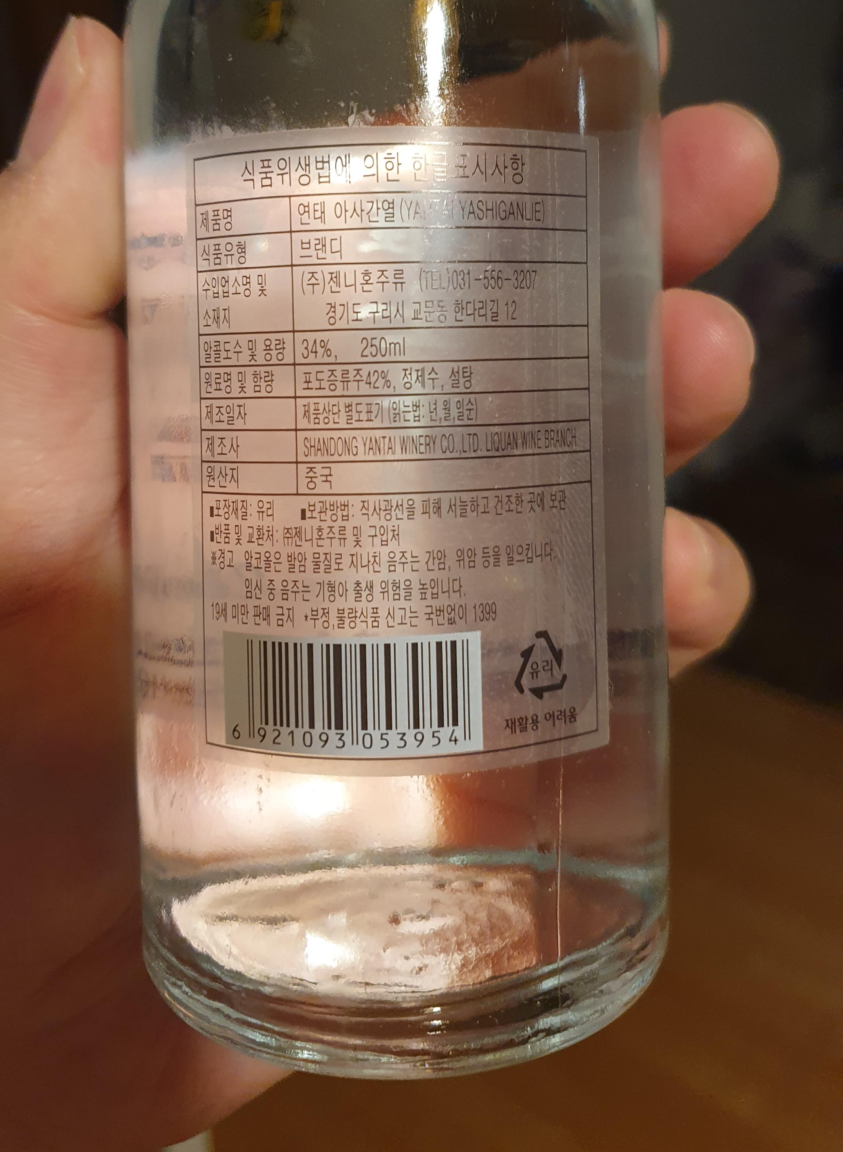 노브랜드 연태 아사간열, 중국 고량주아닌 브랜디 포도증류주 스타일?