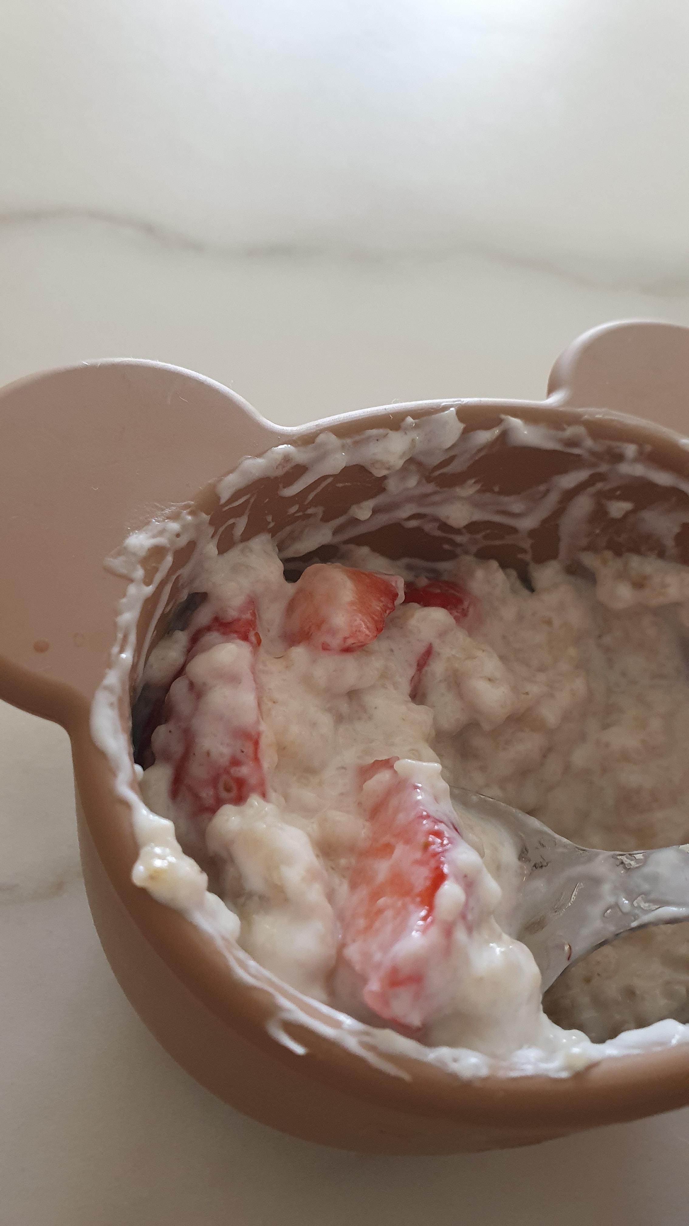 오트밀을 좋아해서 오트밀에 요구르트 그리고 최애의 과일 딸기를