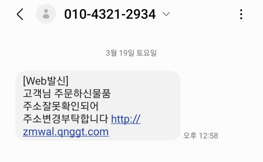 아..쫌 제발..낚시질 좀 그만!/물품주소잘못확인되어 주소변경부탁드립니다.01043212934/스미싱