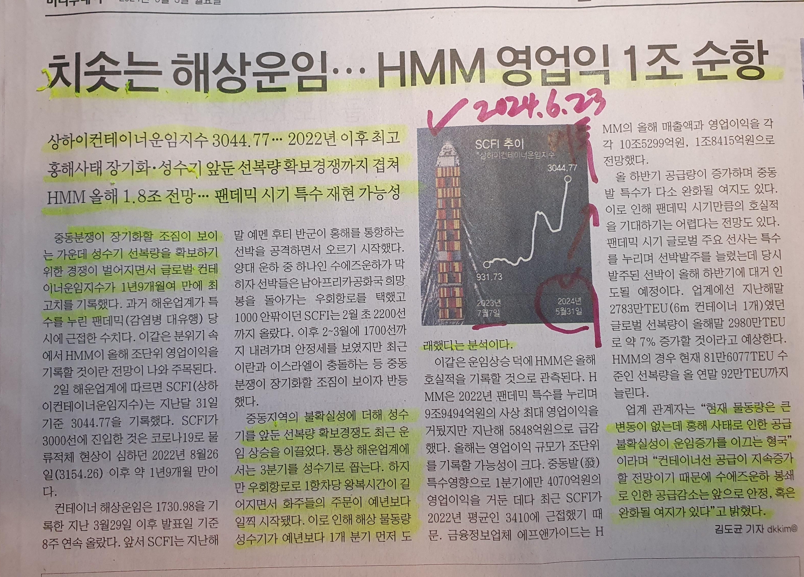 해상운임 몇배의 상승, 물류비용의 부담? 24.6.3 머투