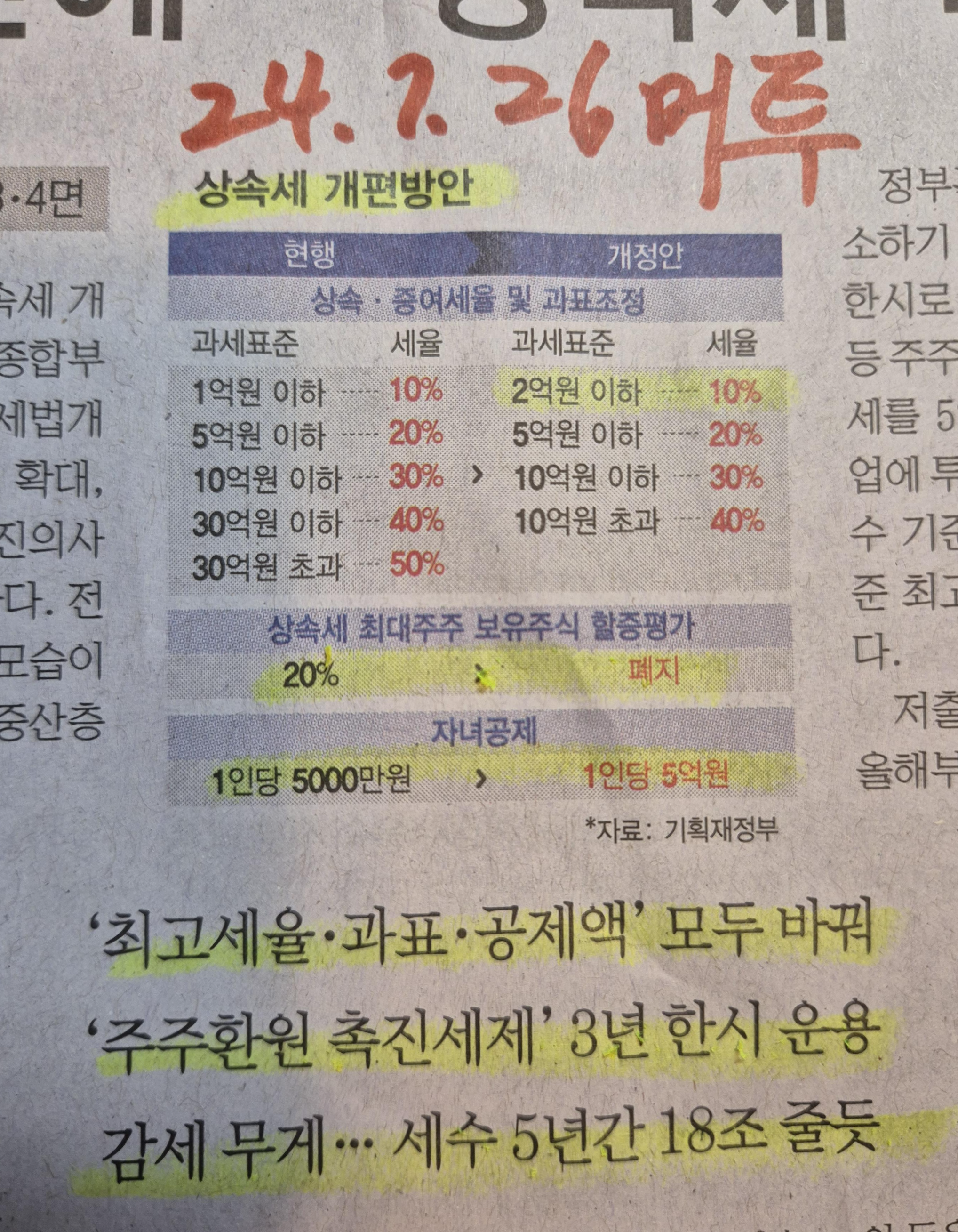 -시대가 바뀌며 상속/증여세에 대한 세율과 과세가 완화될 것으로 보인다.