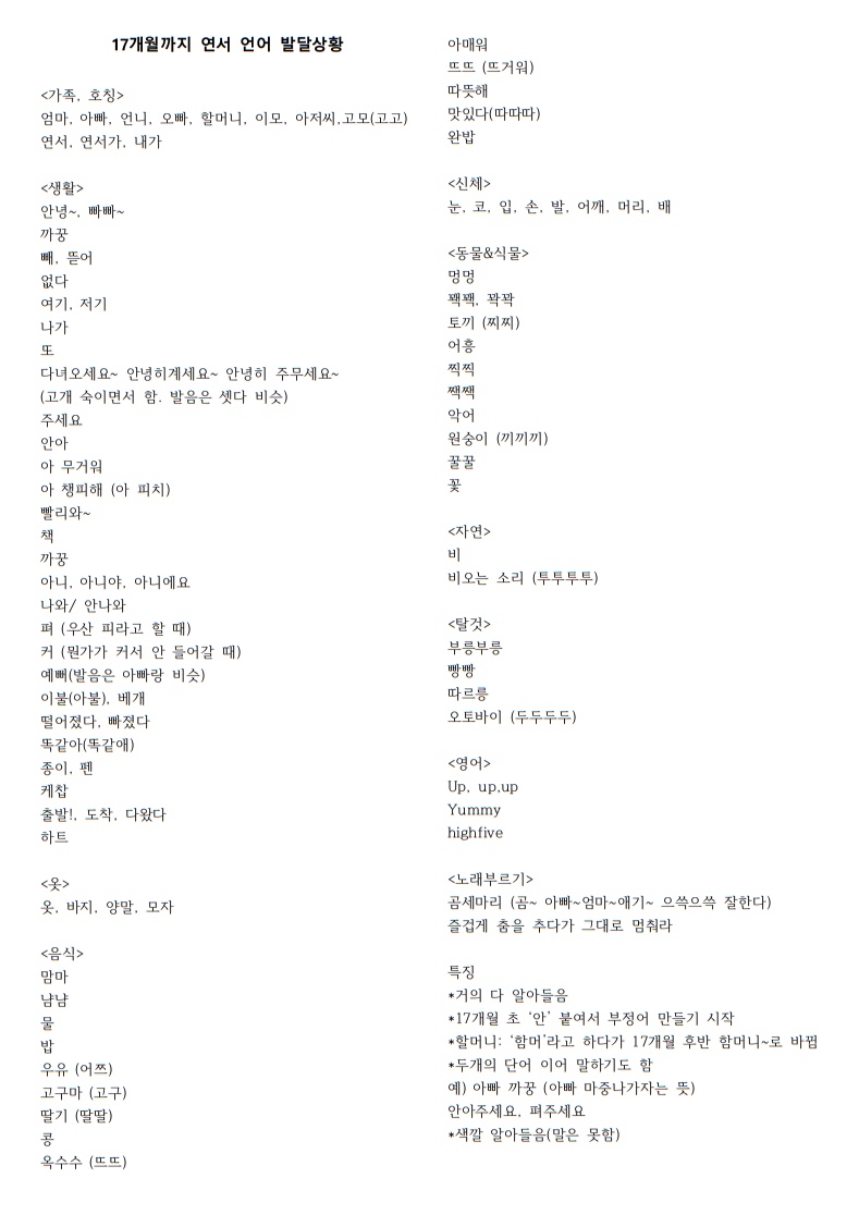 아이가 쓰는 단어를 조금씩 와이프가 메모한 기록지이다.