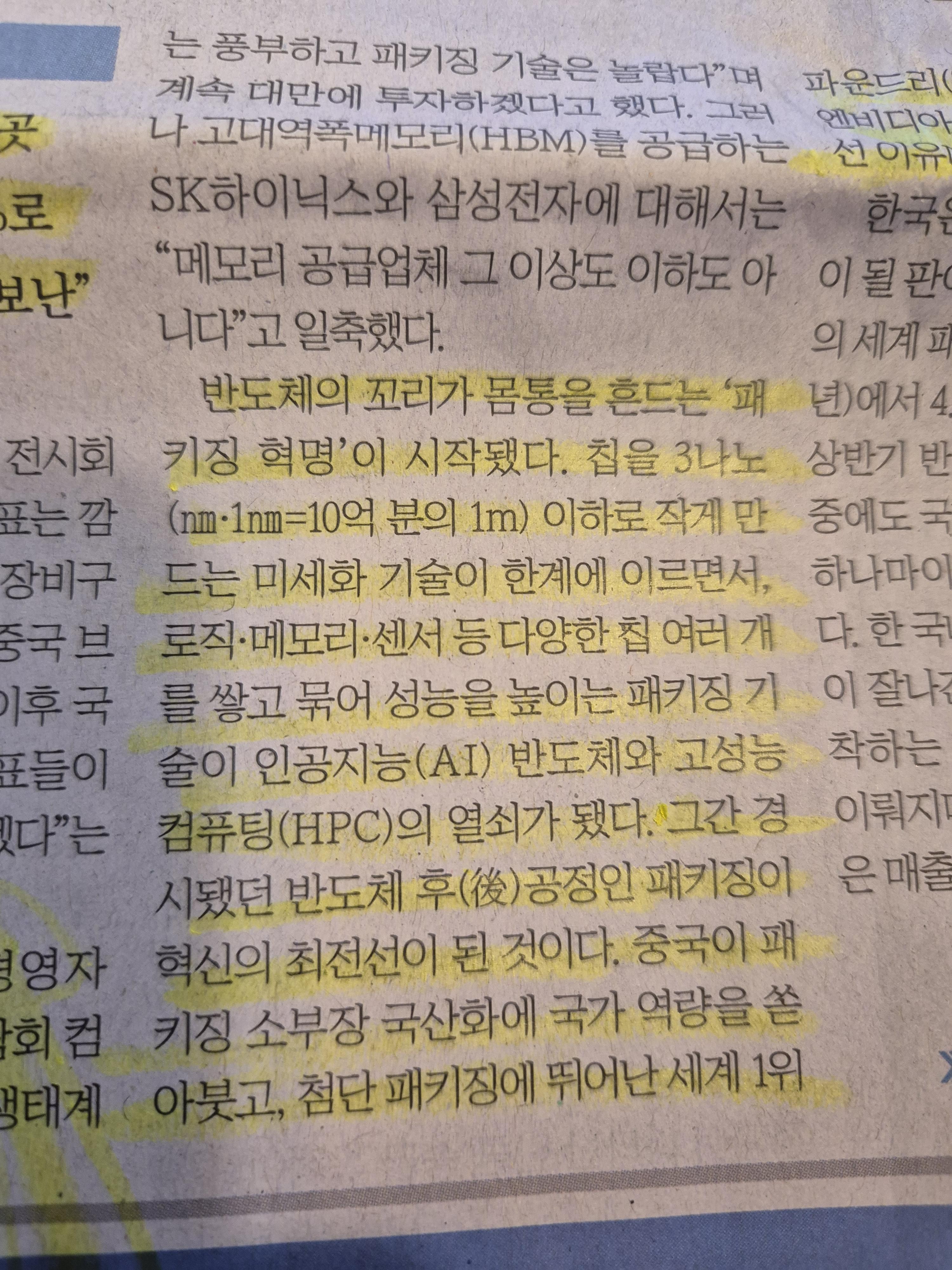 -우리나라의 대기업 삼성과 하이닉스는 올드 기술에 가까운 패키징보다는 고대역폭메모리 HBM 기술에 더욱 투자와 기술력을 집중하고 있기에 반도체 패키징에 대한 시점은 메모리 공급업체 그 이상도 이하도 아닌 크게 신경을 쓰고 있지는 않는 상황으로 보인다.