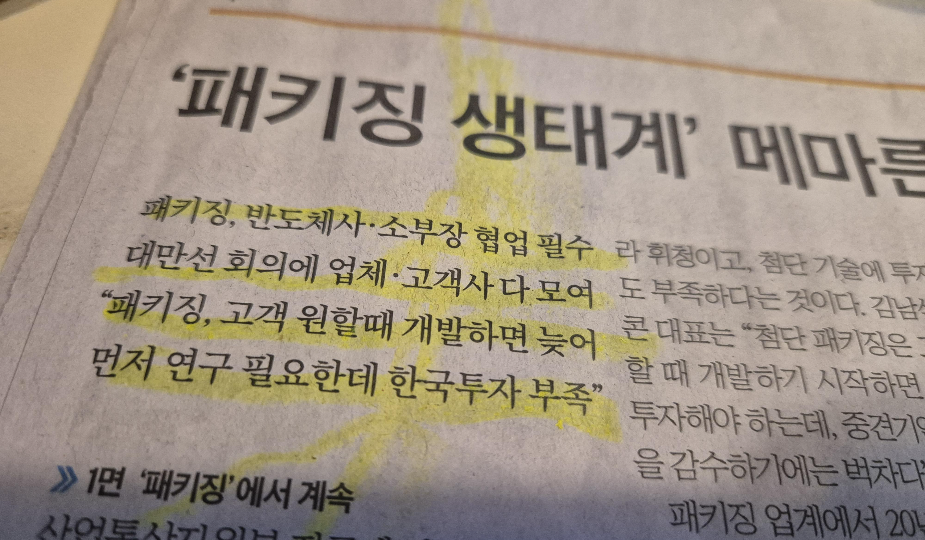 -쉽게 이야기하면 과거 기초 반도체 기술이기에 상업적인 매리트 없이 대부분 아웃 소싱으로 진행하던 기술이 반도체 나노 기술이 가면 갈수록 작아지며 로직, 메모리, 센서 등 반도체에 필요한 기술을 한 번에 넣어 성능을 높이는 패키징 기술이라고 한다.
