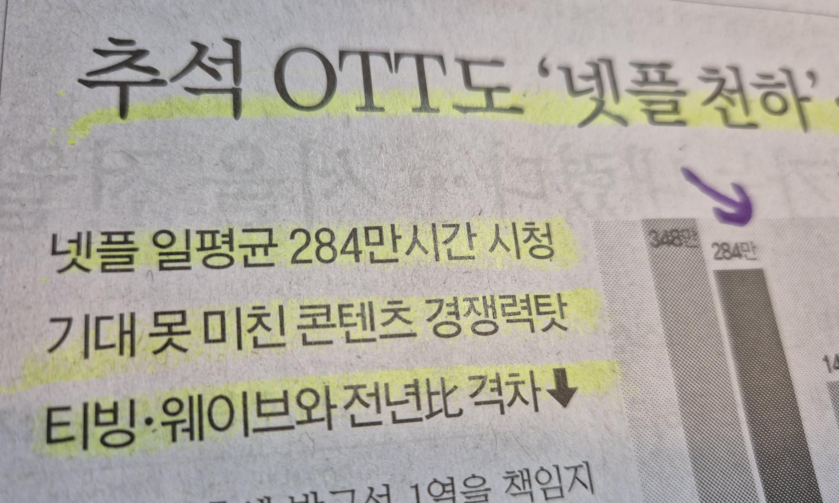 OTT 추석 연휴 어디 앱을 많이 사용했을까? 넷플 쫓는 티빙과 웨이브 24.9.20 머투