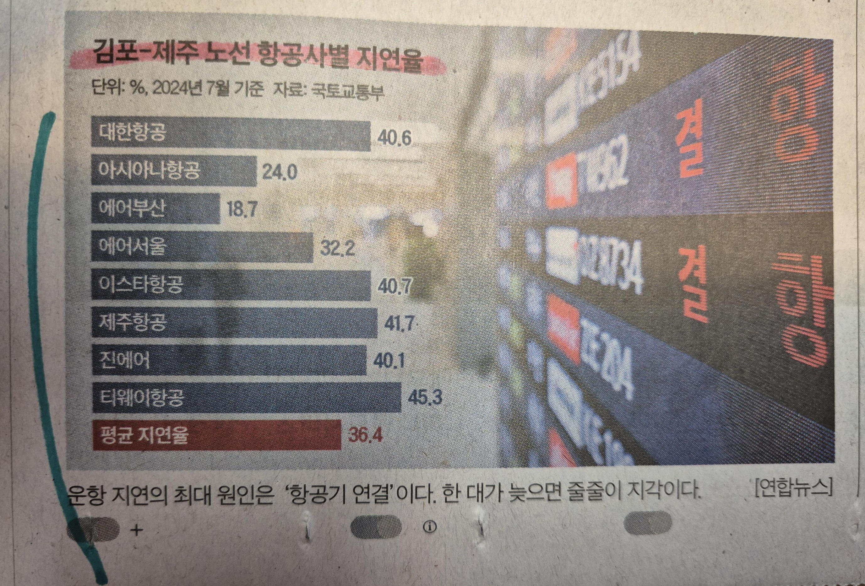국제선 항공사 어디가 시간 준수율 높을까? 낮을까? 24.9.27 중앙