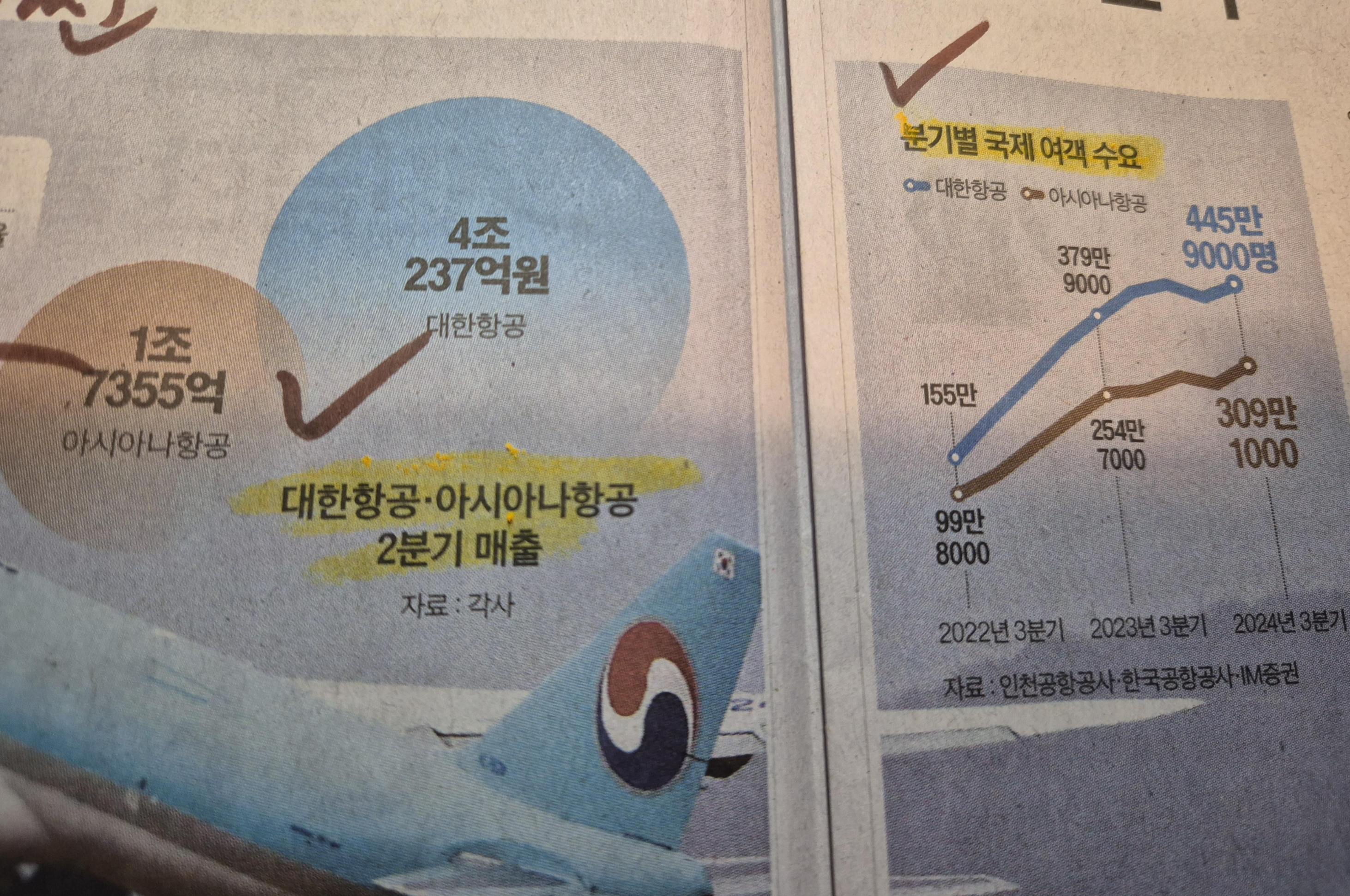 -매출은 두 회사 합쳐서 5조원이 넘는 2분기 실적 엄청나다. 또한 국제 여객 수요 또한 코로나 종식 이후 상승세를 유지하면서 작년 같은 3분기 대비 200만 명 이상이 늘어난 상황이다.