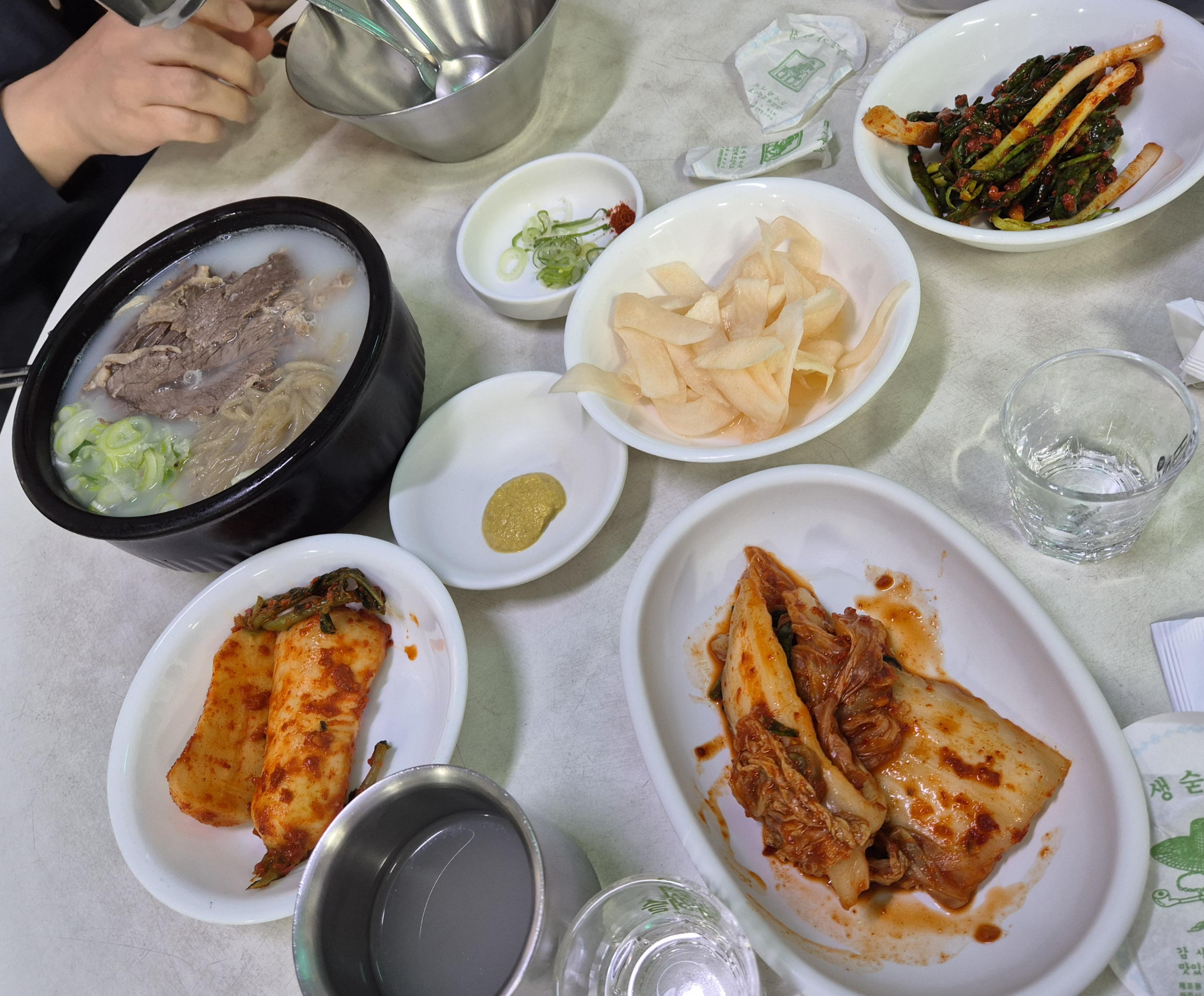 푸짐한 양지고기, 메일 온면, 파 토핑과 함께 토렴 된 밥까지