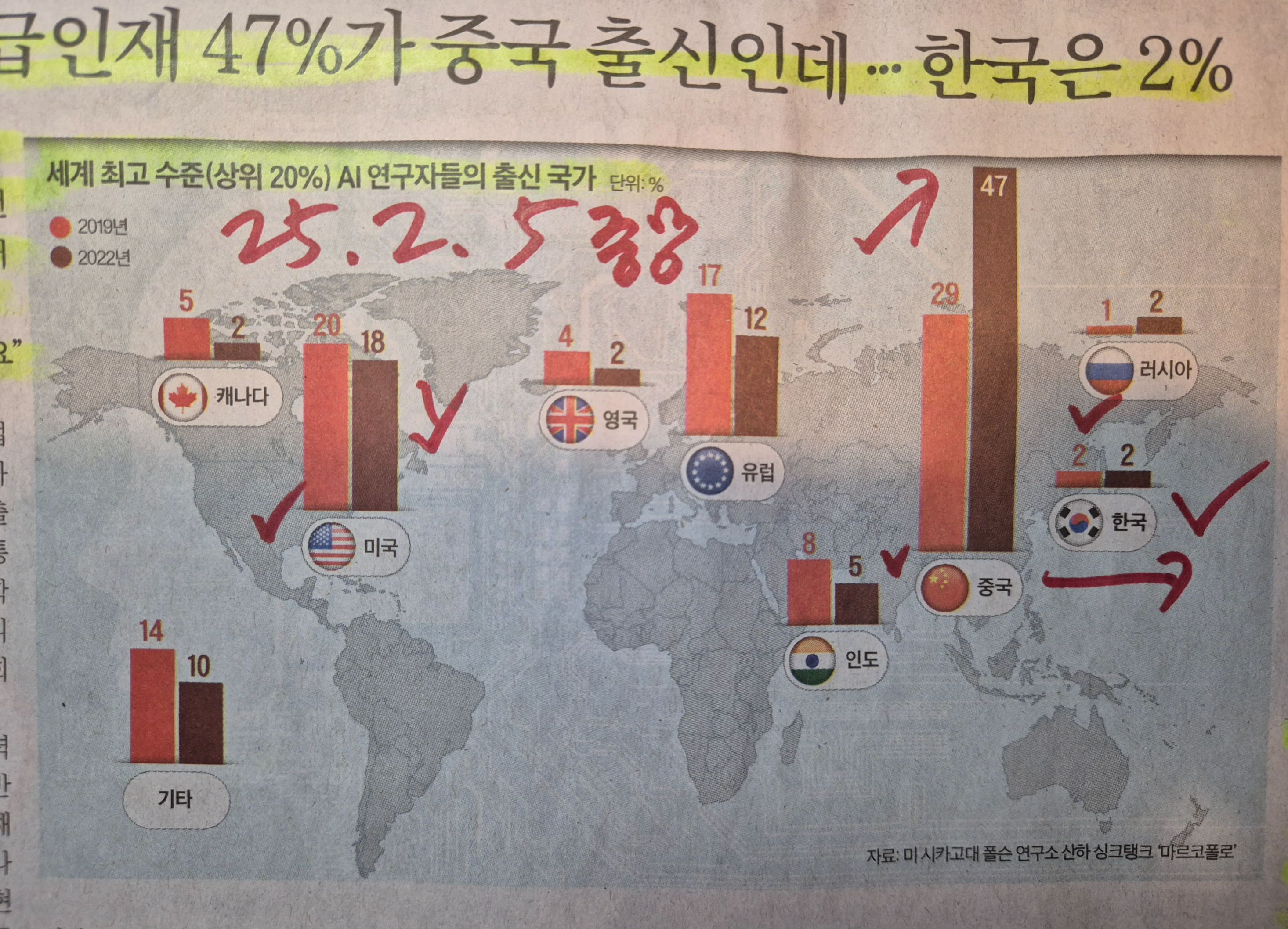 A급인재 47%가 중국? 한국은 전세계 AI연구에서 어떻게 될까? 25.2.5 중앙