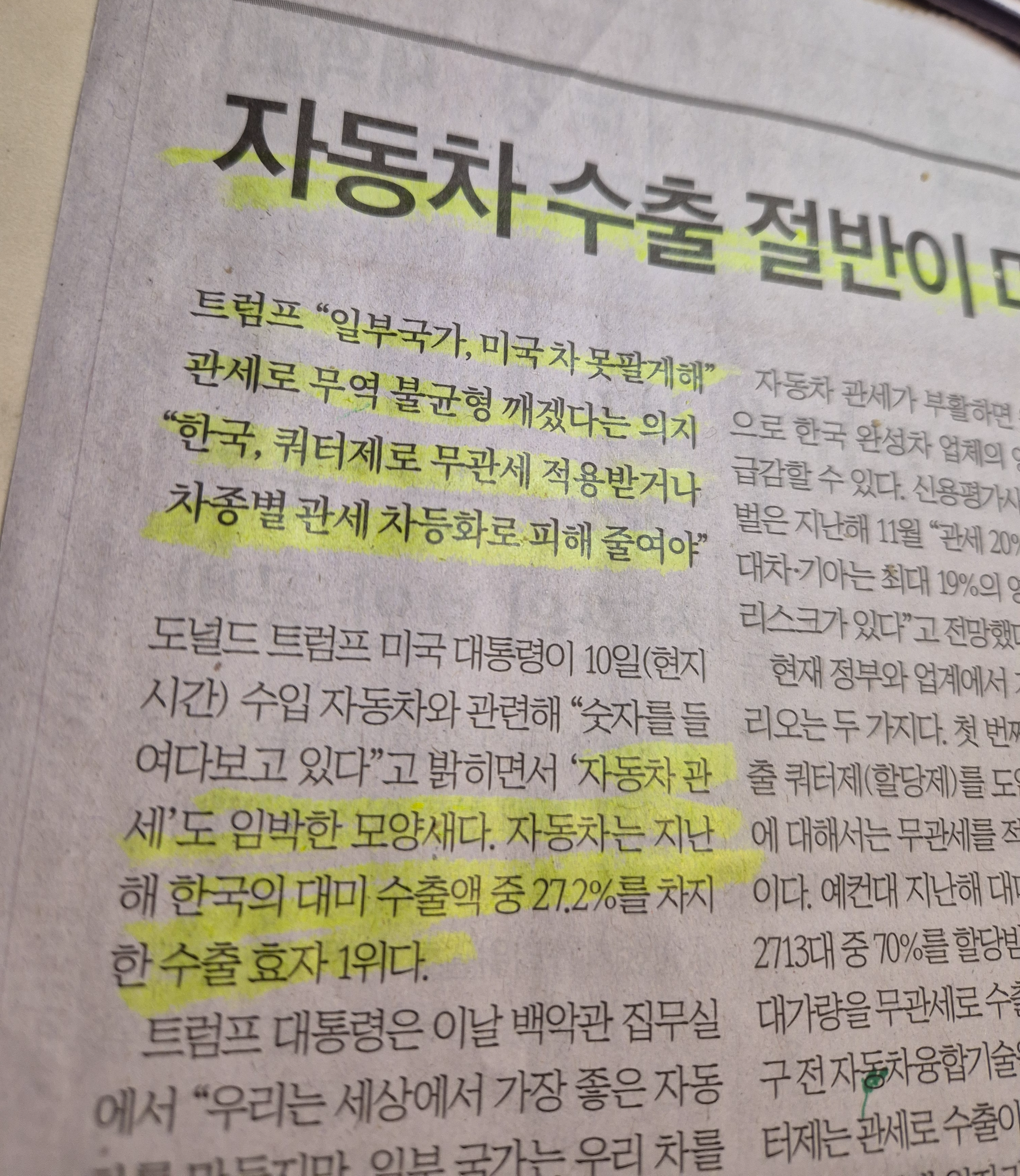 -이러한 결과로 한국 자동차는 전체 한국 수출 중 27% 정도가 미국으로 수출되는 물량으로 1/4 넘는 상황이다.