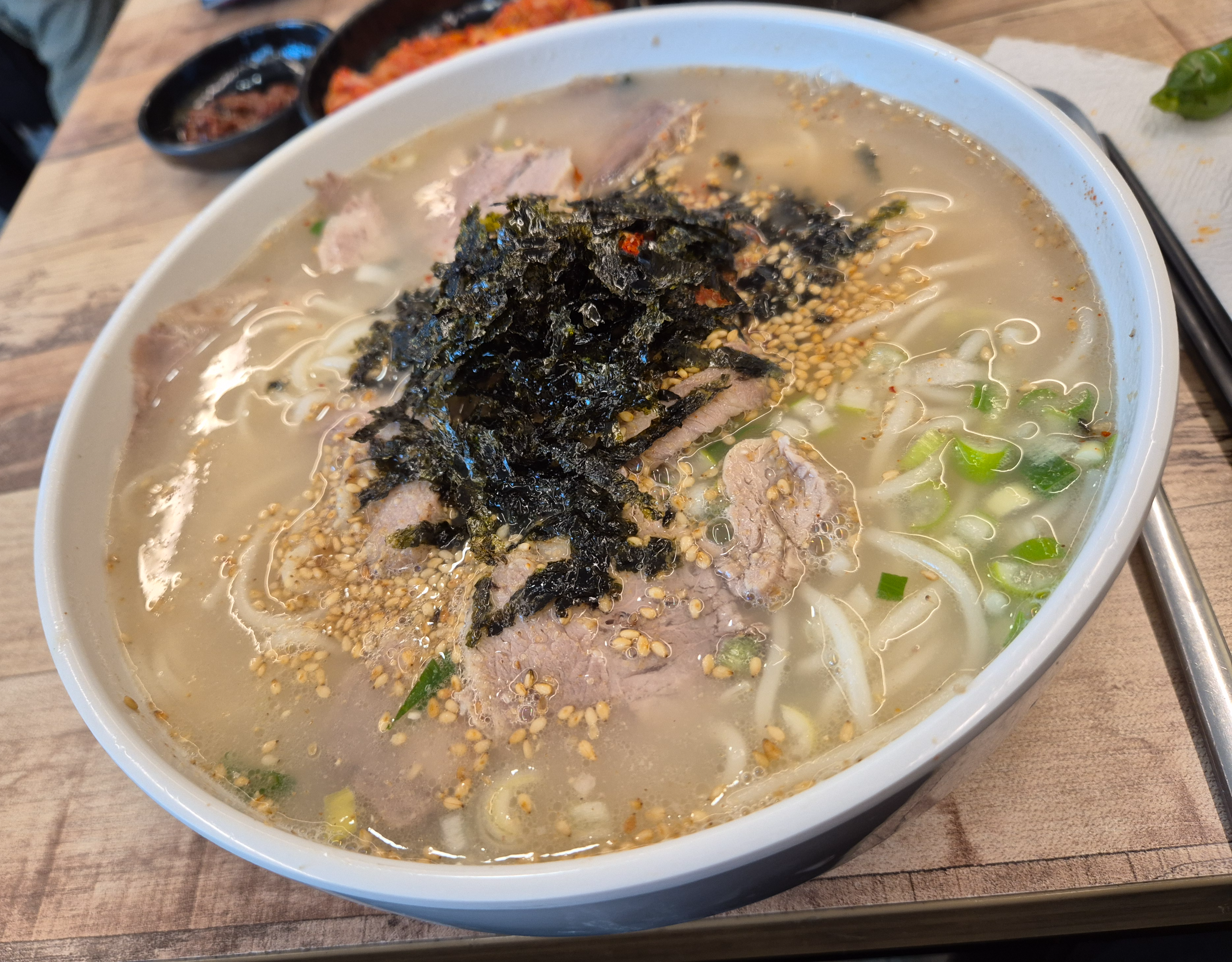 국물의 돼지 육수도 입이 텁텁하지 않을 정도의 적당한 농도가 마음에 들었다 .