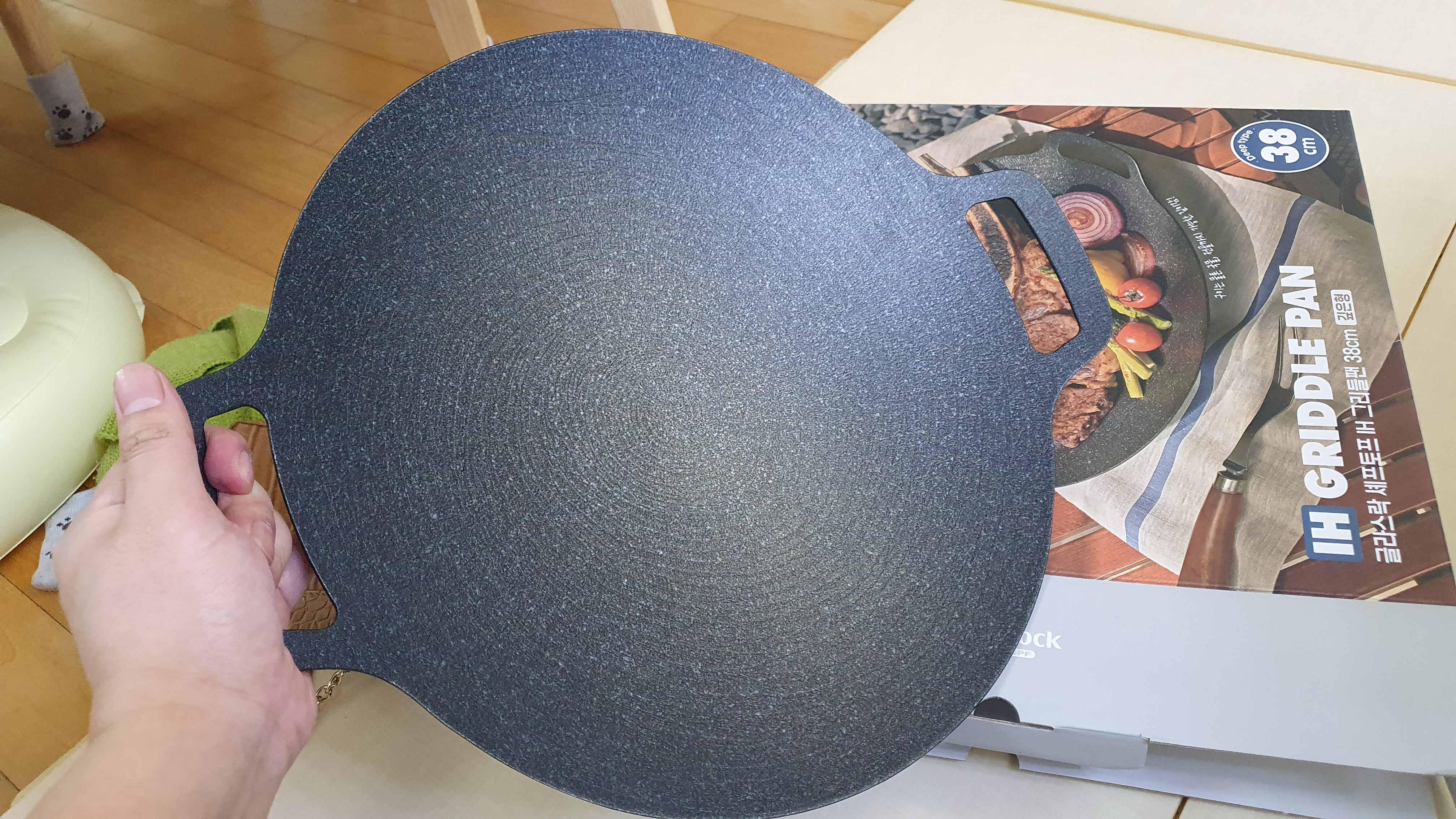 코스트코 글라스락 셰프토프 IH 그리들팬 38cm 구입기 코스트코에서 구입하게된 그리들팬 보자마자 용도가 많은 것 같다는 생각이 스친다. 1) 야외에서 고기를 굽거나 곱창전골과 같이 전골류를 먹기에 아주 좋은 사이즈 2) 38cm 라는 일반 냄비보다도 넓은 사이즈이기에 집에 손님이 온 경우 쓰기 좋은구이는 물론 국물, 전골까지 가능한 깊이감!! 제일 처음 해먹은 것은 꼬치처럼 만든 오뎅탕을 먹어보았다. 확실히 길고 깊다보니 따뜻하게 먹기 좋았다. 손바닥을 비교하면 사이즈가 가늠이 된다. CMDT Review( 상품-제품 리뷰 ) 2024.03.16