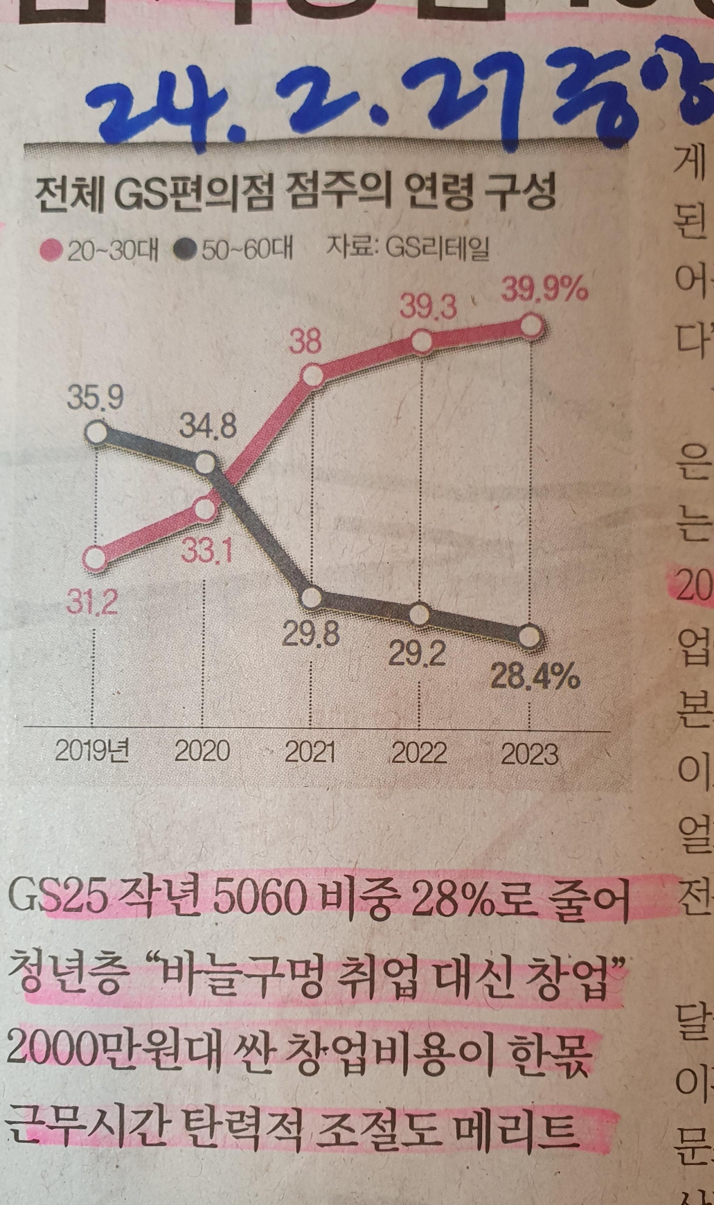 -편의점 창업은 회사를 다니던 40대에서 50대의 중년 세대의 테크트리로 인식되어 왔었다. -코로나 이후의 점주 연령을 보면 상황을 확인할수 있다. 코로나 이후 고용의 멈추면서 젊은 20대,30대의 젊은 층들의 편의점 창업이 급속이 늘어난 것을 확인 할 수 있다. -젊는층 유입의 가장 큰 이유는 편의점 창업시 비용이 감당할 수 있다는 것. 2-3000만원 정도의 금액으로 운영이 가능하며 본사에서 운영 관련해서 지원을 받을 수 있다는 것이 편의점 창업에 뛰어드는 젊은층에 큰 매리트가 되었다고 한다. -코로나가 정말 많은 것을 바꾸었다 생각이 든다. 삶의 형태 속 마스크,배달,고용,취업 등 기존의 시스템에서 보다 개인화되고 각자생존을 위한 시대로 코로나 이후에는 접어든 느낌이다. -또한 시대가 젊은 층의 임..